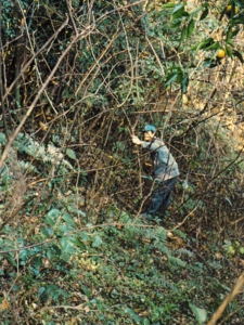 ![]() 【 1 伐採 】 落葉が終わった冬場に刈り取ります。 |