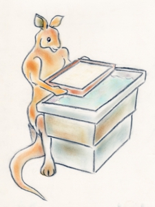 ![]() 【 10 紙床付け 】 漉きあげた紙は簀から外し、紙床板に重ねます。 |